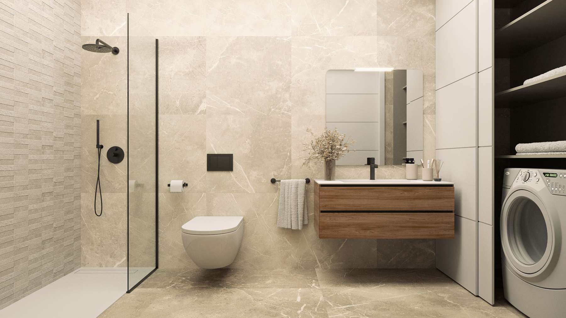 De appartementen zijn afgewerkt met hoogwaardige materialen en houten kasten en deuren. De keuken is volledig ingericht, maar de apparatuur is niet inbegrepen. De badkamers zijn volledig uitgerust met sanitair, meubels, douchewanden en kranen. De verlichting is energiezuinige ledverlichting en de woningen zijn voorzien van een pre-installatie voor centrale airconditioning met Air Zone-systeem en warmtepomp, evenals mechanische ventilatie om de luchtkwaliteit te garanderen.
